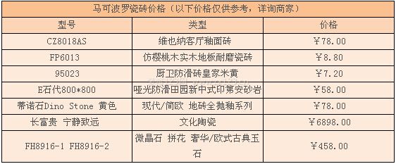 馬可波羅瓷磚以產(chǎn)品最全、質(zhì)量最好、形象最佳作為瓷磚行業(yè)的三最,展現(xiàn)的是中西融合、文化陶瓷為研究對(duì)象,受到了廣大國(guó)內(nèi)外人士的關(guān)注。特備是于2007年上市的中國(guó)印象系列,在國(guó)內(nèi)外的瓷磚市場(chǎng)引起了巨大的波瀾。并先后獲得了中國(guó)知名品牌、中國(guó)馳名商標(biāo)等等榮譽(yù)稱號(hào)。在業(yè)內(nèi),馬可波羅瓷磚可以作為多個(gè)第一傲立。例如國(guó)內(nèi)最大的亞光仿古瓷磚企業(yè)、中國(guó)防滑磚第一等等稱號(hào)。