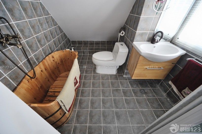 浴室以淺灰色墻磚裝點出地中海天與海坐擁的氛圍,賦予空間潔凈清新的感覺。