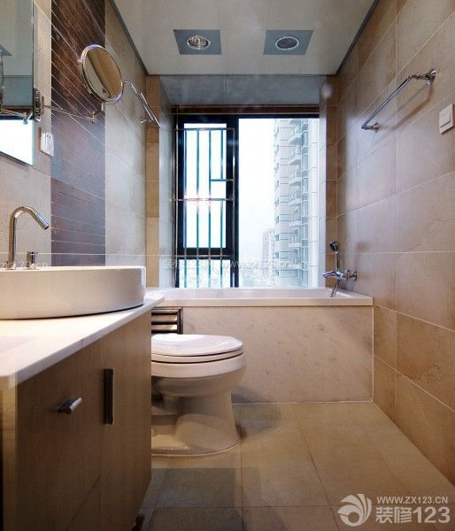大理石包裹成的白色浴缸,在窗外自然光的陪伴下,屋主可以盡情享受沐浴帶來(lái)的快樂(lè)。