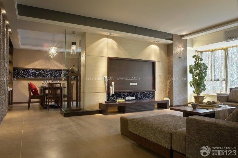 大面卡其色調(diào)的裝飾格調(diào),而電視墻墻與餐廳裝飾點(diǎn)綴相互呼應(yīng)的規(guī)劃,掩去直進(jìn)的貫穿視野。