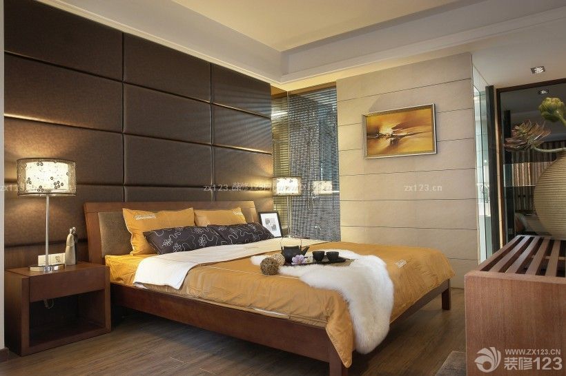 主臥室采用軟包材質(zhì),整體色調(diào)也以褐色調(diào)為主,營(yíng)造出穩(wěn)重的主人性格。