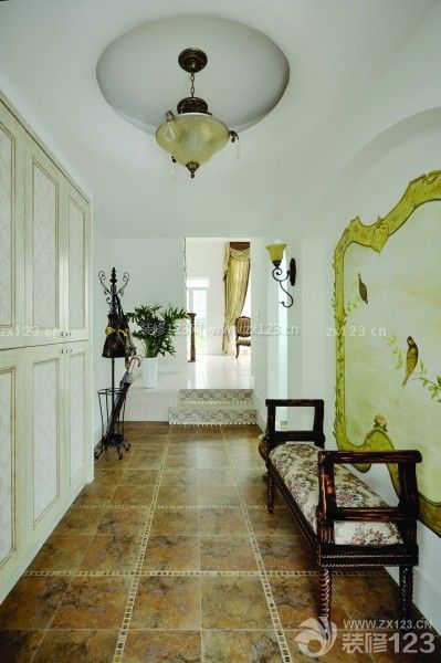 入門玄關(guān)處清新優(yōu)雅,構(gòu)造出溫馨的迎賓氣勢,端景墻仿佛從地面延伸而出,添注了簡單小擺設(shè)。