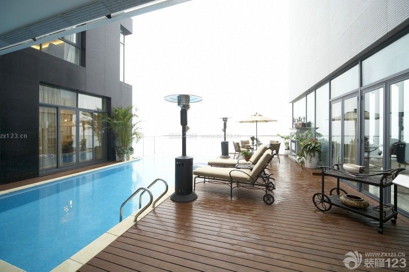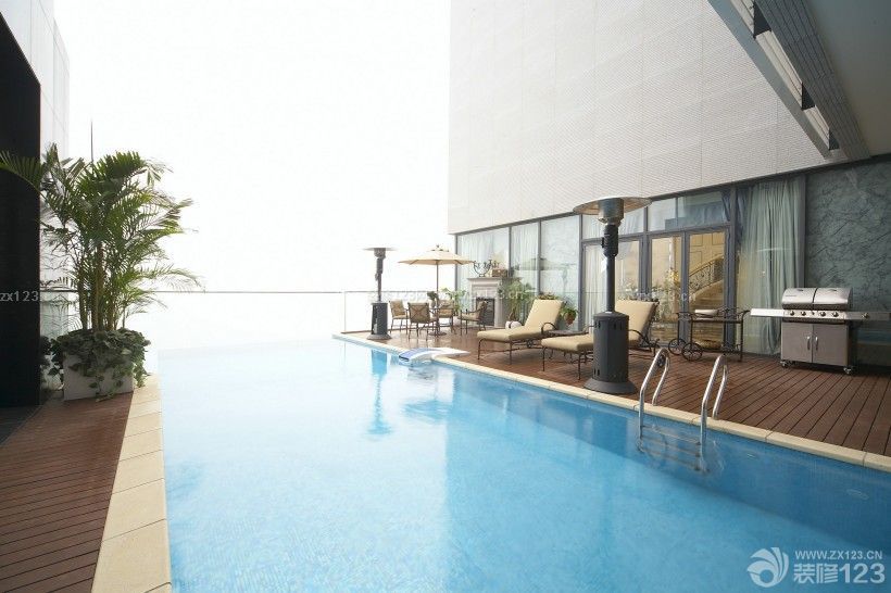 木板元素塑造的傳統(tǒng)英倫氛圍,高效利用屋前空地,為一家人帶來(lái)別樣的游泳池。