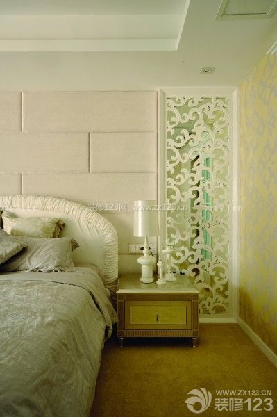主臥室床頭背景墻,延續(xù)客廳電視墻的設(shè)計,相互呼應(yīng)。