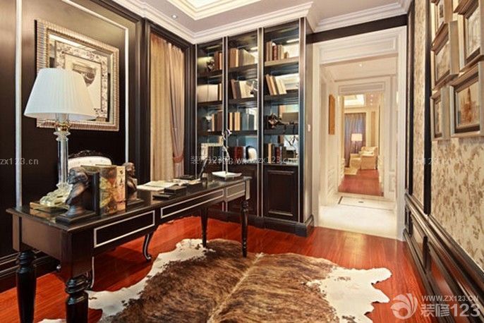 書(shū)房墻面用高檔壁紙,或優(yōu)質(zhì)乳膠漆,以烘托豪華效果。