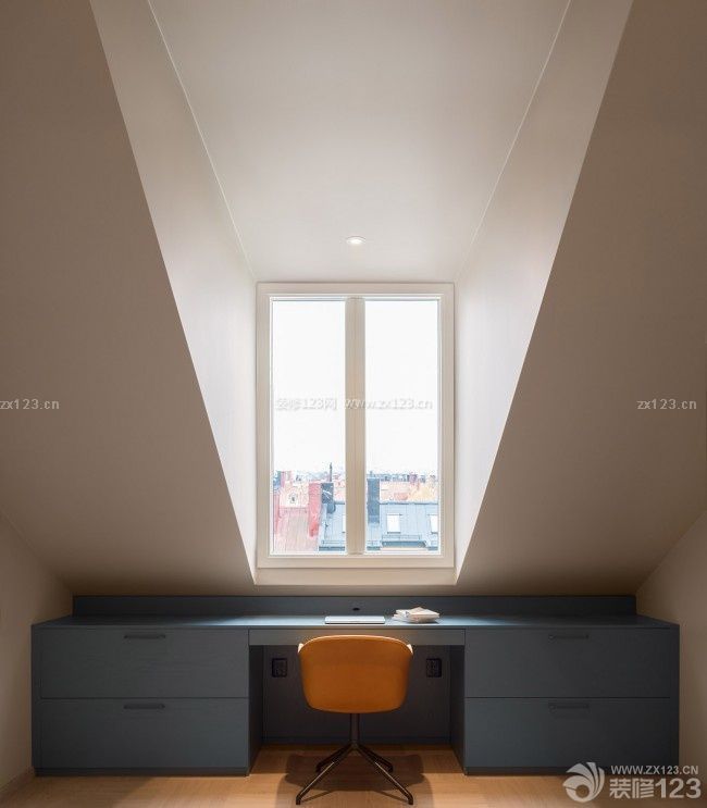 一點(diǎn)也不要擔(dān)心這間屋子的采光,靠窗設(shè)計(jì)書桌收納,將該利用的地勢盡量不浪費(fèi)。