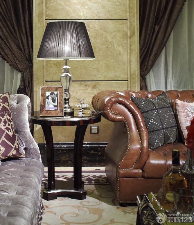 棕色皮革沙發(fā)搭上同色系的實(shí)木家具彰顯出硬朗的氣質(zhì)。
