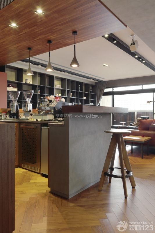 獨(dú)立的吧臺、極具創(chuàng)意的手作杯架、被Loft工業(yè)風(fēng)包圍的空間。