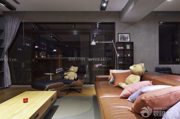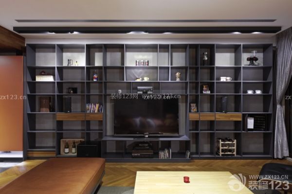 電視墻規(guī)劃了強(qiáng)大的收納功能,深色調(diào)展現(xiàn)工業(yè)氣息的剛硬魅力。