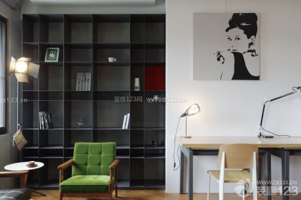 以實(shí)用功能為主,開放式空間里規(guī)劃好書房書桌,同時搭配一個小小的角落品味咖啡。