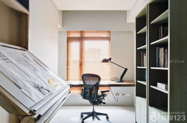 一切從實用角度出發(fā),放置與主人興趣愛好相關(guān)聯(lián)的書柜、電腦,形成一個多功能空間。