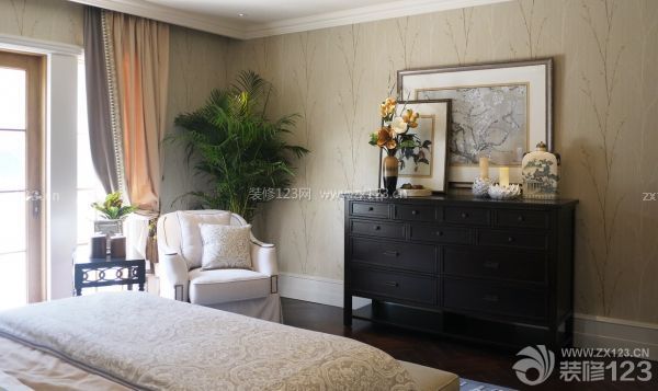 樹(shù)枝意象的墻紙正式長(zhǎng)輩們想要的素雅,家具的選擇上一深一淺很舒適。