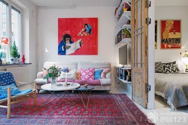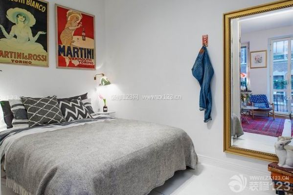 臥室里在正對客廳的位置掛了一面穿衣鏡,體現(xiàn)功能的同時,還成功的將空間延伸。