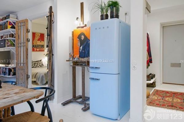 天藍(lán)色的冰箱是男生的最好選擇,提亮空間色調(diào)又倍感溫馨。