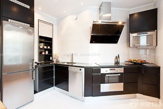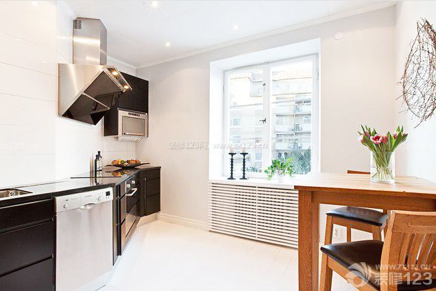 由于屋內(nèi)本身的格局,廚房的櫥柜沒辦法一字排開,不錯經(jīng)過設(shè)計師的精確設(shè)計規(guī)劃,讓廚房的設(shè)計變得合理。