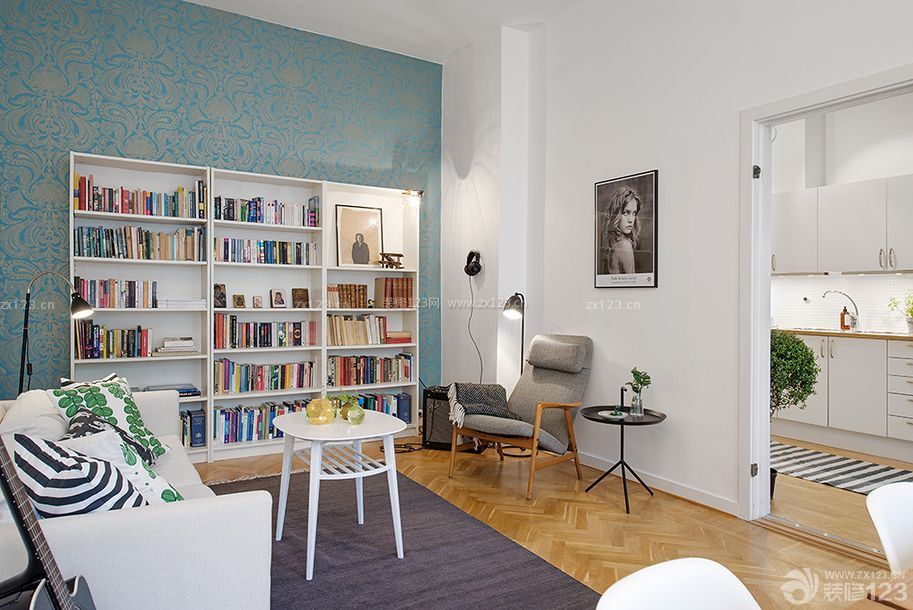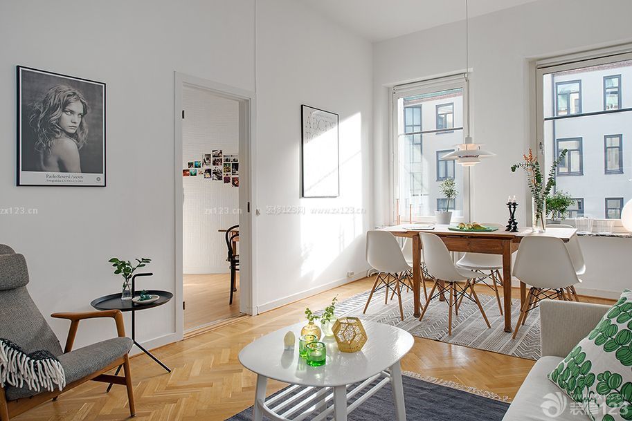 以白為底蘊(yùn)的設(shè)計(jì)空間,橡木色地板鋪貼,簡單帶出空間層次。