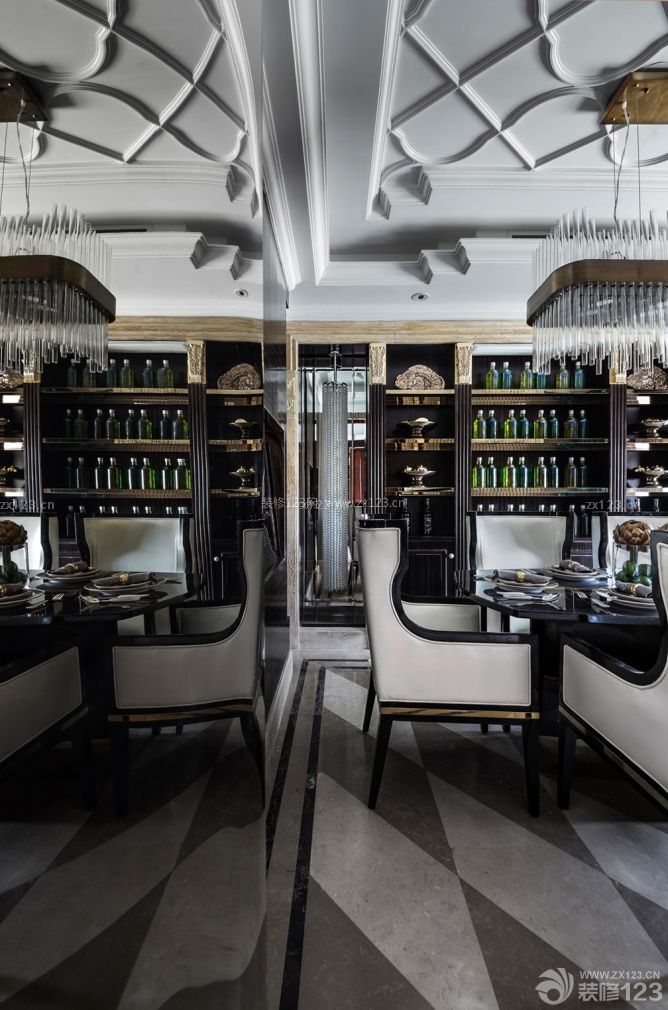 特別設(shè)置了一處獨立式的品酒空間,它與餐廳、客廳相互串聯(lián),餐廳立體式的壁柜供主人收藏海量美酒。