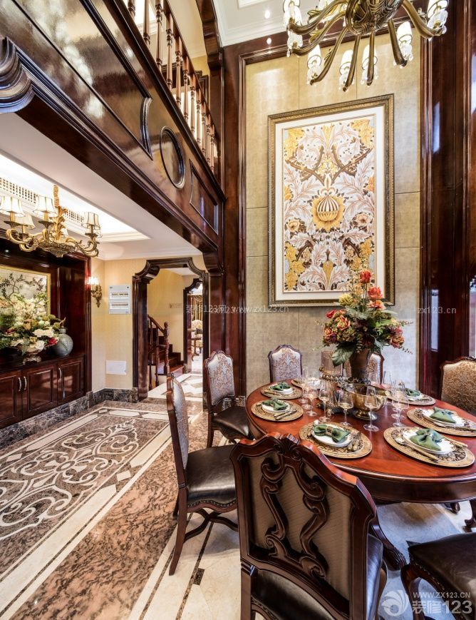 石材和地磚的圖案設(shè)計(jì)渾厚大方,與木質(zhì)家具相輔相成,恬淡舒適而不失奢華貴氣,為居住者帶來高質(zhì)量的居家水平。