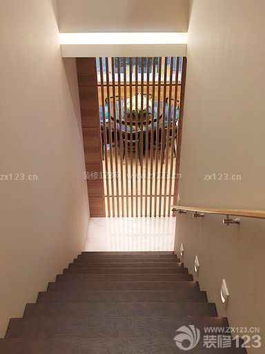 樓梯轉(zhuǎn)角處利用格柵作為玄關(guān)設(shè)計(jì),滿(mǎn)足風(fēng)水上的要求。