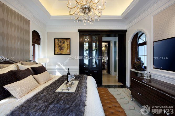 二層主臥的家具古典,空間設(shè)計(jì)以白色為主色調(diào),淡雅清新。