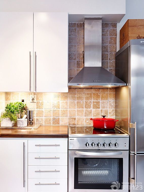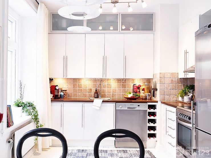 考慮冰箱深度規(guī)劃的長形廚房,以豐富繽紛的壁磚呈現(xiàn)溫暖氣氛。