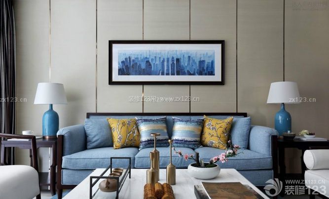 淺藍(lán)色的沙發(fā)讓心靈得以放松,感受家的溫暖。