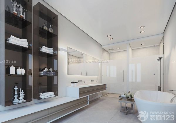 以白色為主題的衛(wèi)浴空間,可以放大視覺(jué)效果,深色家私成為空間焦點(diǎn)的表現(xiàn)。