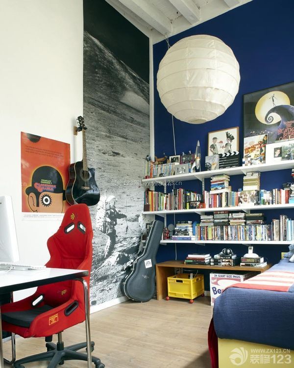 衛(wèi)生間里也擺放基本好看的書,隨性步調(diào)無處不在。