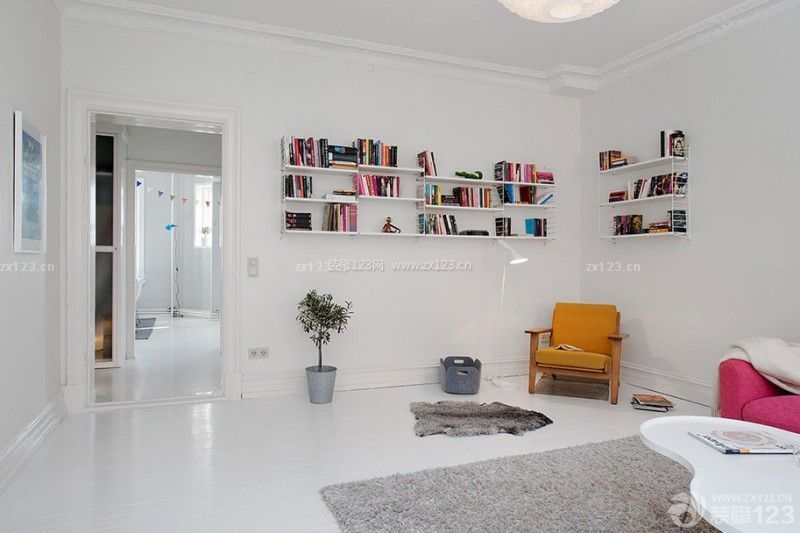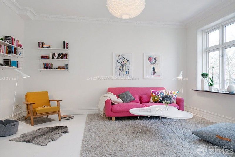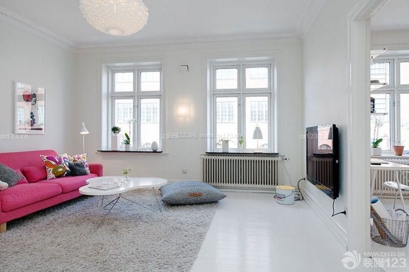 白色基調(diào)中,擺放一張?zhí)壹t色的沙發(fā),亮點(diǎn)顯著。