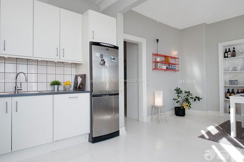 設(shè)計(jì)師精確考量櫥柜尺寸,結(jié)合戶型缺陷,將冰箱位置設(shè)計(jì)好。