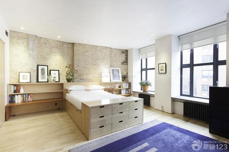 凹凸有致的床頭背景墻,豐富床頭視覺。兼具收納功能的臥室床,實(shí)用性極大。