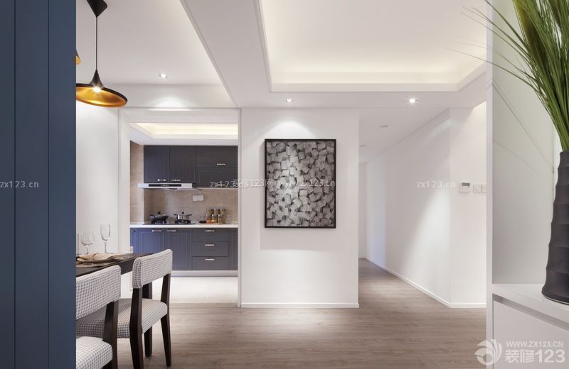 設(shè)計整體空間以現(xiàn)代簡約的風(fēng)格為主,適用于剛需家庭居住??臻g顏色以白色與藍灰色為基調(diào),整個戶型簡潔大方且不失優(yōu)雅。