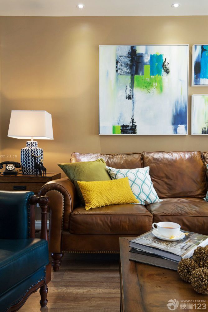 寬敞的客廳中三人沙發(fā)選用意大利進口頭層牛皮精心打造而成,外形硬朗干練,帶有美式傳統(tǒng)家具韻味。