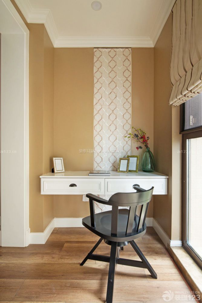 利用臥室陽臺角落設(shè)計(jì)的書桌,加強(qiáng)了空間的整體感和功能性。