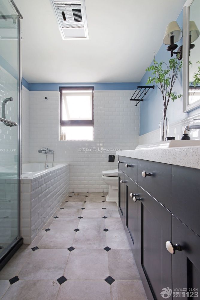 Houzz風(fēng)格的衛(wèi)生間,防水乳膠漆加墻磚的結(jié)合讓空間得以延伸,風(fēng)格更加統(tǒng)一,讓沐浴變成了享受。