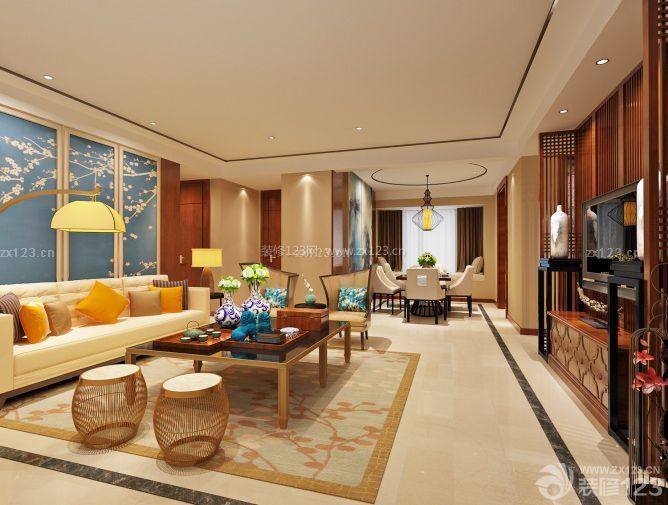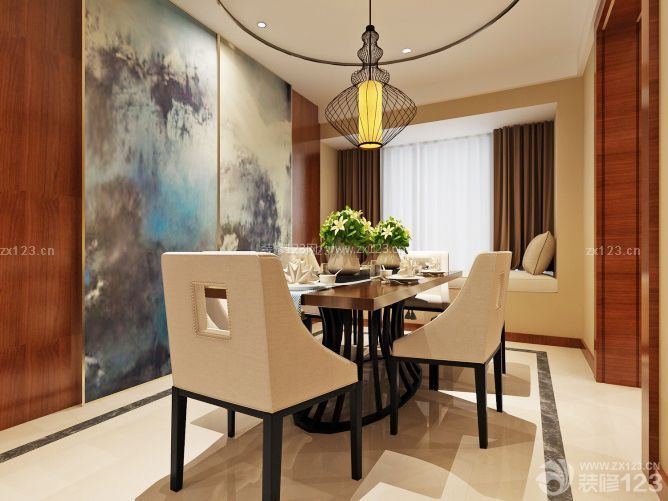 在客廳、餐廳、沙發(fā)背景墻等用抽象的裝飾畫(huà)點(diǎn)綴其中,使整個(gè)空間顯得既復(fù)古典雅又充滿活力。