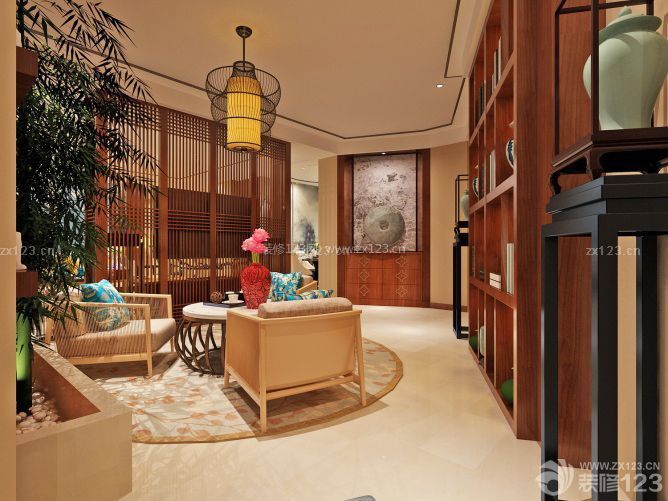 在設(shè)計(jì)中,玄關(guān)與客廳利用屏風(fēng)來(lái)分割空間。