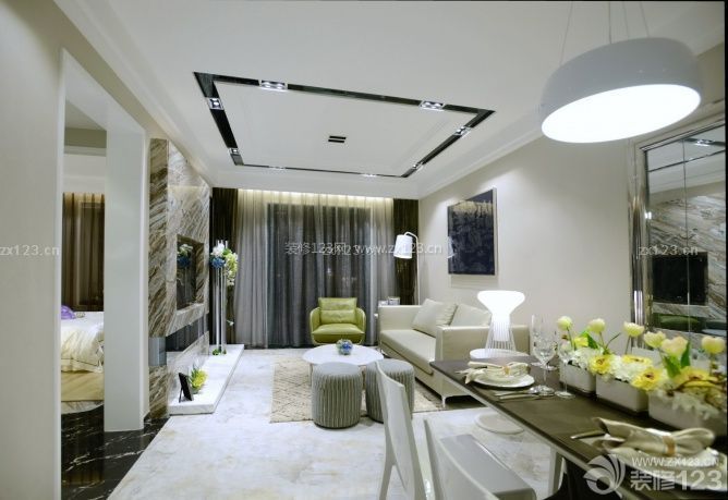 電視背景是整個(gè)空間的焦點(diǎn),隱藏式的壁爐在寒冷的冬季和炎熱的夏天,呈現(xiàn)出二種冰火迥異的氛圍,夏日冰冷的鏡面和冬日熱情的火焰使空間平添生活的情調(diào)和樂趣。