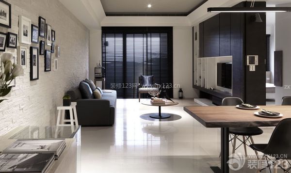 開(kāi)放式規(guī)劃的公共空間里,設(shè)計(jì)師以黑白主色系鋪陳。