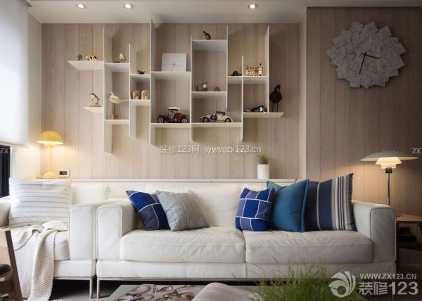 白色軟沙發(fā)搭配格子墻板,營造北歐清新風(fēng)貌。