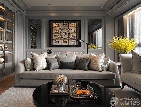 沙發(fā)上點(diǎn)綴黑色滾邊、鈦絲圖騰抱枕與鋼烤技術(shù)時(shí)尚造型的圓桌,帶出奢華、優(yōu)雅的視覺享受。