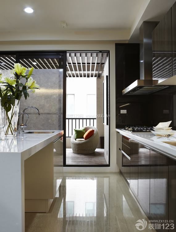廚房外的陽(yáng)臺(tái)空間,手法僅是利用減的設(shè)計(jì),除卻過(guò)度的植栽、戶外景觀元素,先讓整個(gè)空間變得干凈,如此一來(lái),只要簡(jiǎn)單利用家具與盆栽的擺飾,就可以輕松得設(shè)計(jì)感。