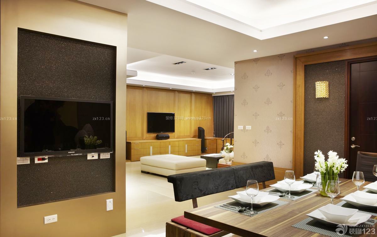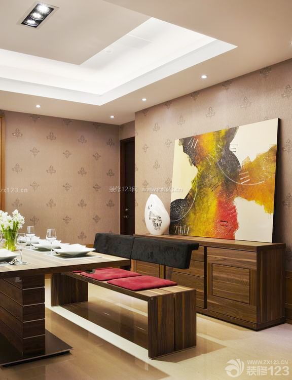 同款壁紙延伸至餐廳區(qū)域,除去裝修主墻的生硬手法,單單借由擺飾陳設(shè)讓空間區(qū)位鮮明起來(lái),也讓業(yè)主的美感經(jīng)驗(yàn)?zāi)芙璐苏宫F(xiàn)出來(lái)。