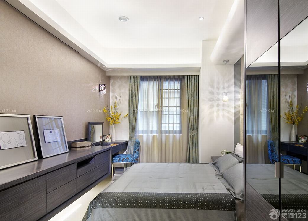 主墻面TV柜、收納柜、化妝桌均利用柜體整合成為相同的動(dòng)線及將功能隱匿于柜體之中,簡化了空間里線面的關(guān)系。